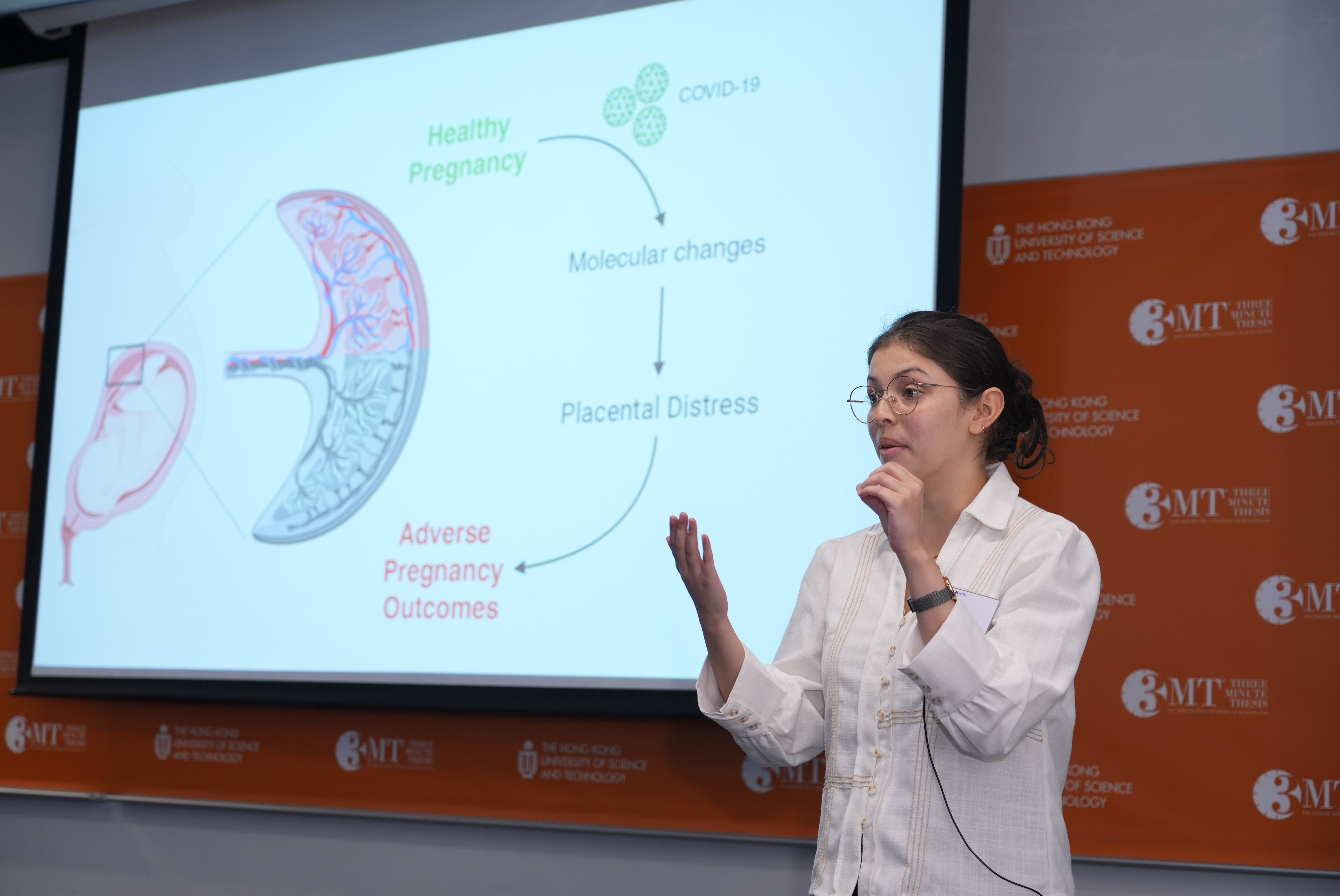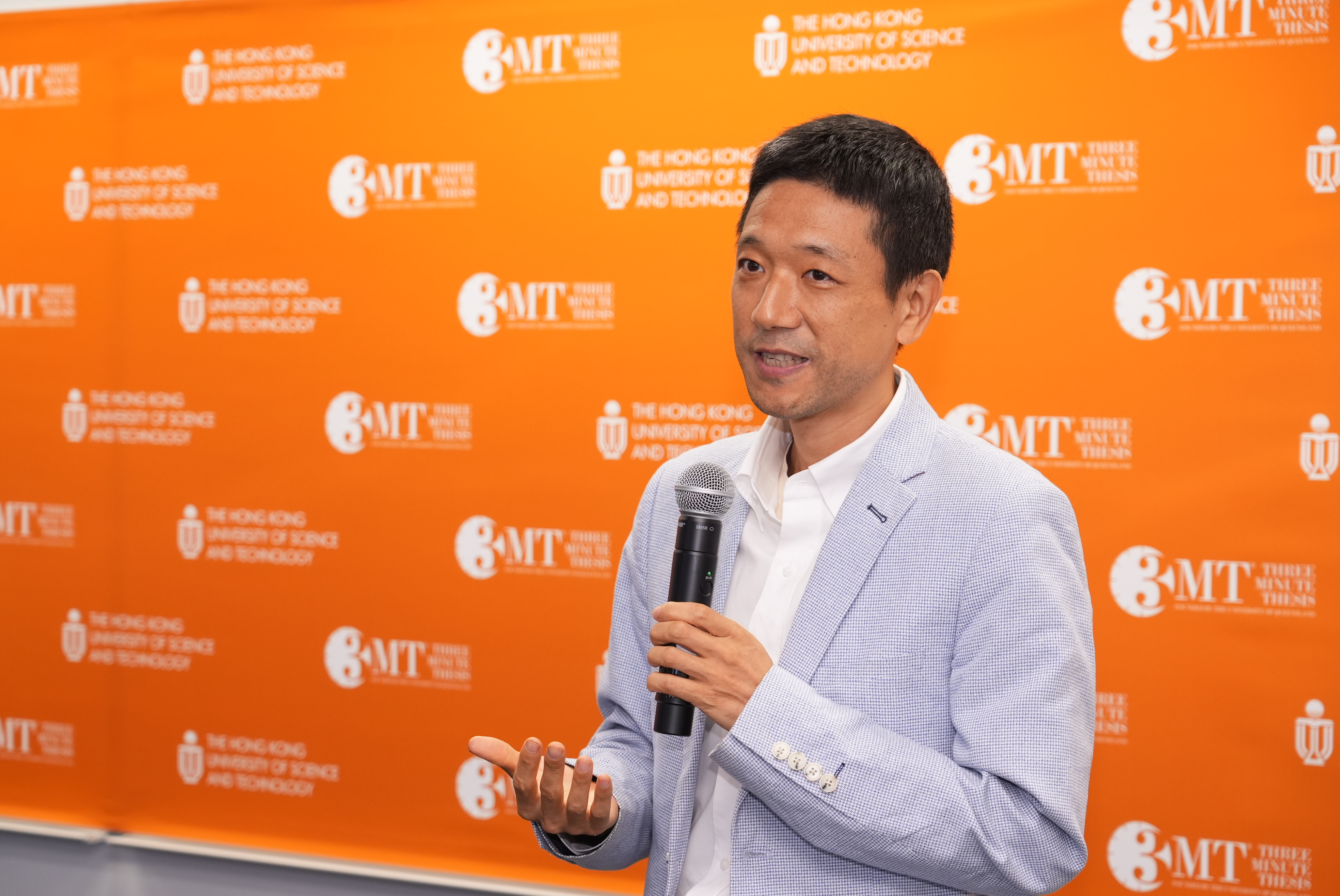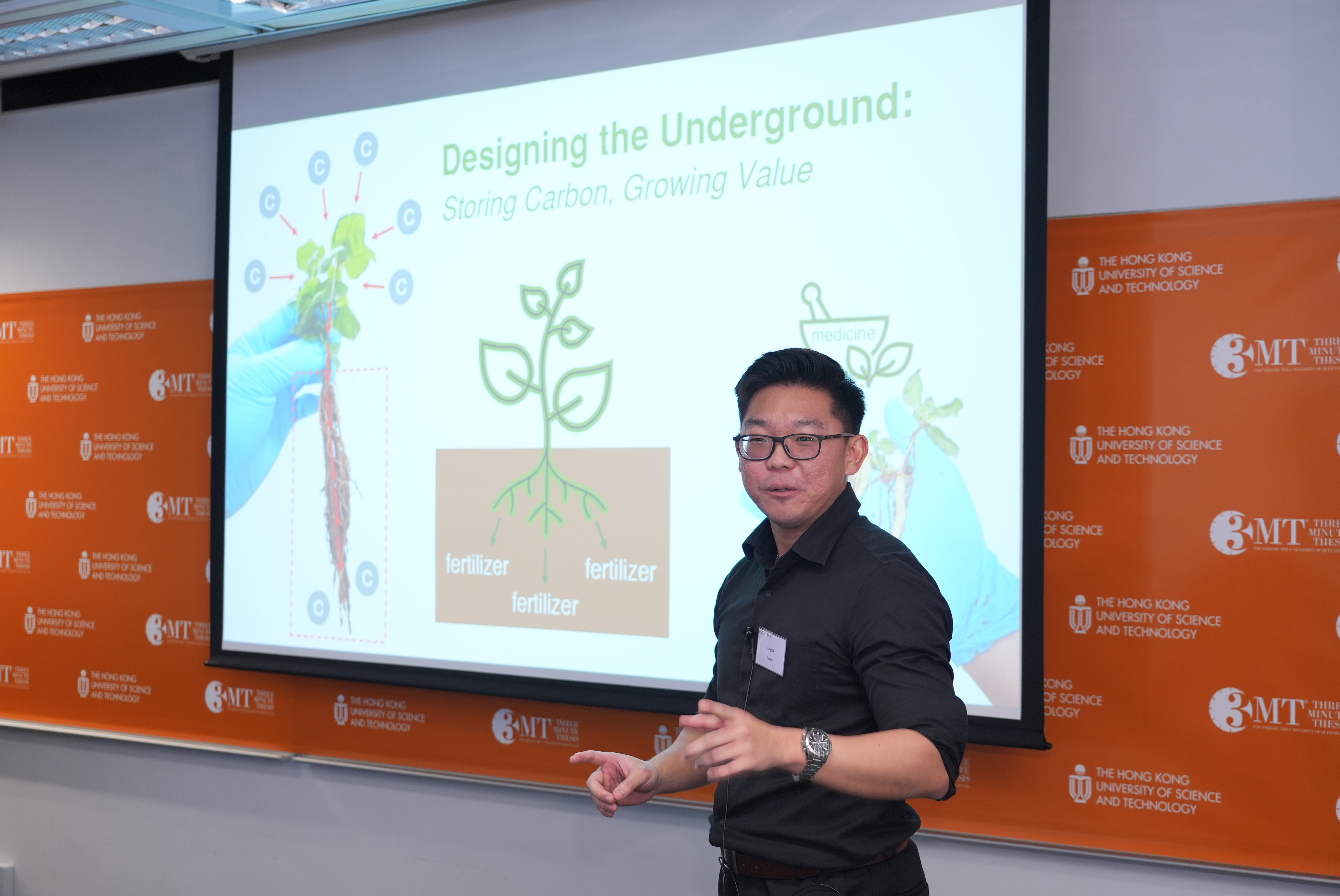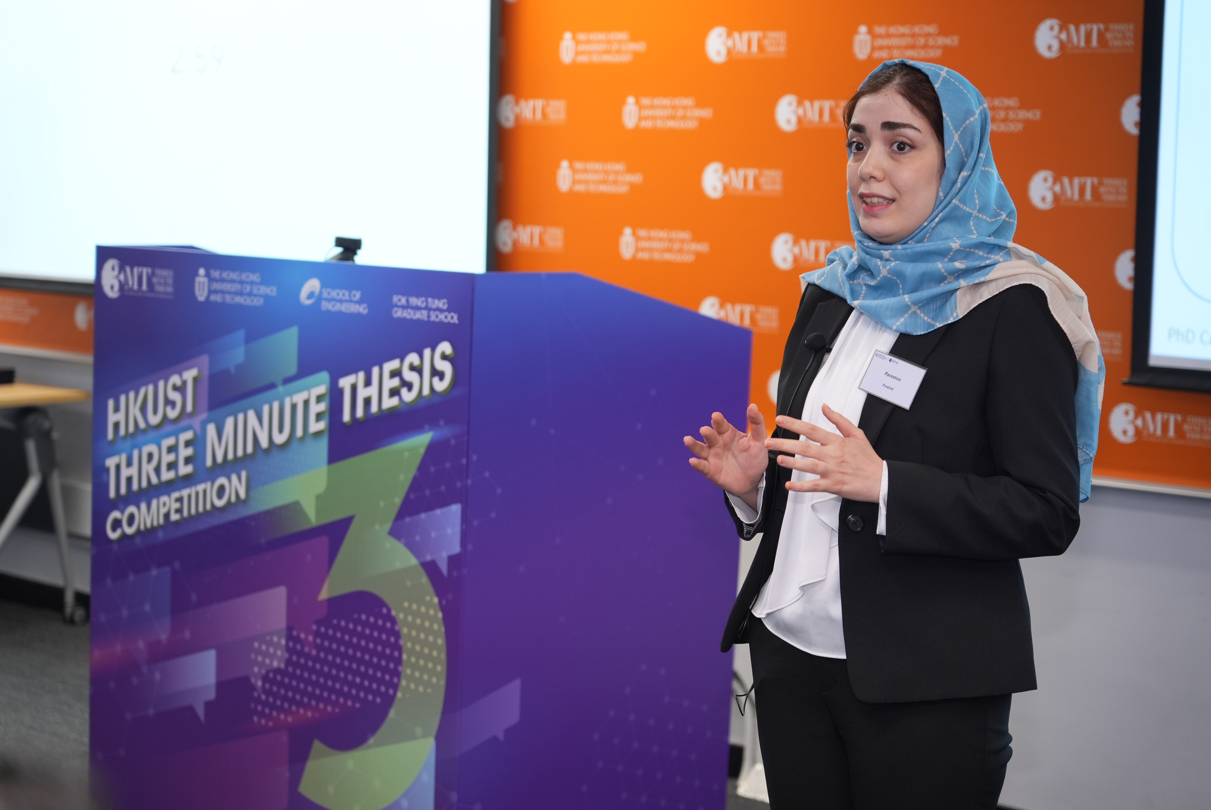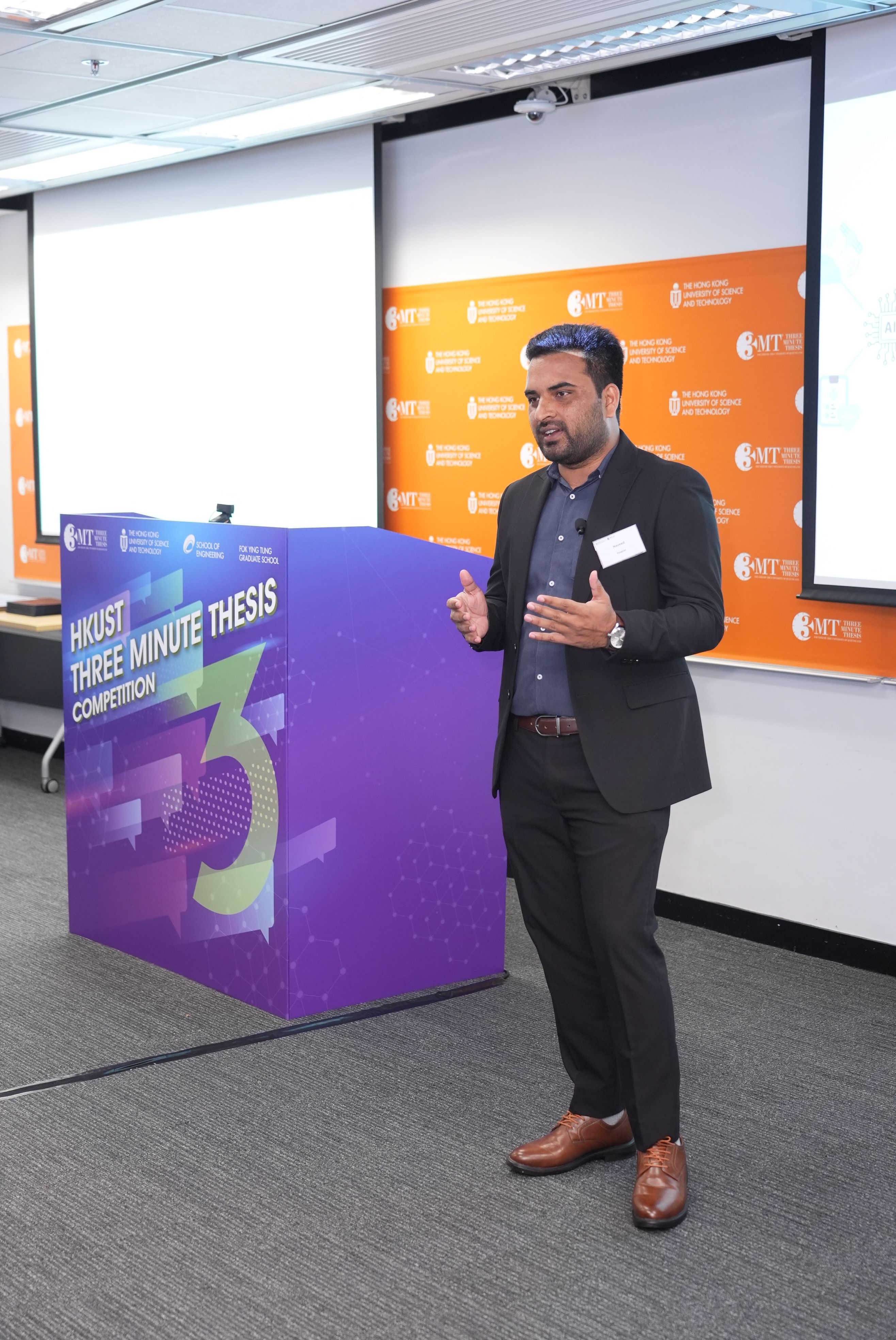 The 2026 HKUST Three Minute Thesis (3MT®) Competition attracted entries from thirteen disciplines and representing twelve economies. After four days' pre-selection interviews, eight candidates from four schools and with six nationalities were selected for the final round that was held on April 15, 2026. At the final round all the finalists presented their enthusiasm for research and introduced their work with cheerful spirit and stimulating style. The judges evaluated the finalists' 3MT® presentations as well as their performance during the Q&A session. Vrinda Mathur, PhD student in the Division of Life Science, won the Championship. She will also represent the HKUST at the 2026 Asia-Pacific 3MT® Competition. The 1st Runner-up and the 2nd Runner-up went to Eman Ansar, MPhil student in the Department of Computer Science and Engineering, and Giorgio Armand Manzanilla Robel, PhD student in the Department of Civil and Environmental Engineering. Francis Eric Patricio Almaquer won the People's Choice Award.